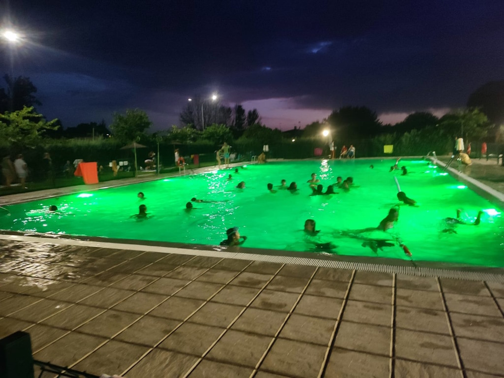 La pasada noche del viernes 8 de agosto, la Piscina Municipal se llenó nuevamente de entusiasmo e ilusión con la llegada del segundo baño nocturno de la temporada, donde niños y mayores pudieron disfrutar del del magnífico ambiente nocturno.
